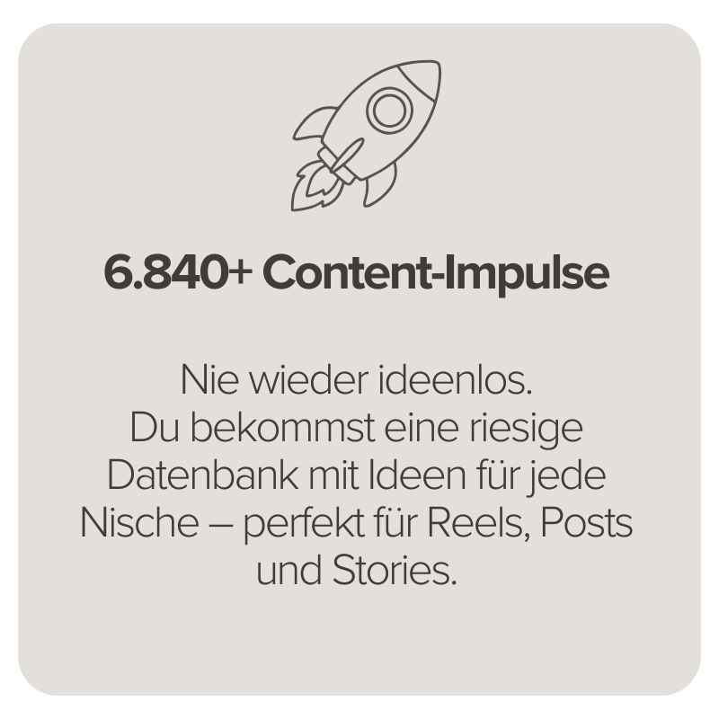Mit liebevoll entwickelten Vorlagen, einem flexiblen Content-Planer, klaren Leitfäden und einem riesigen Ideen-Generator bekommst du ein komplettes Social-Media-System, das sich in deinen Alltag integriert – nicht umgekehrt.